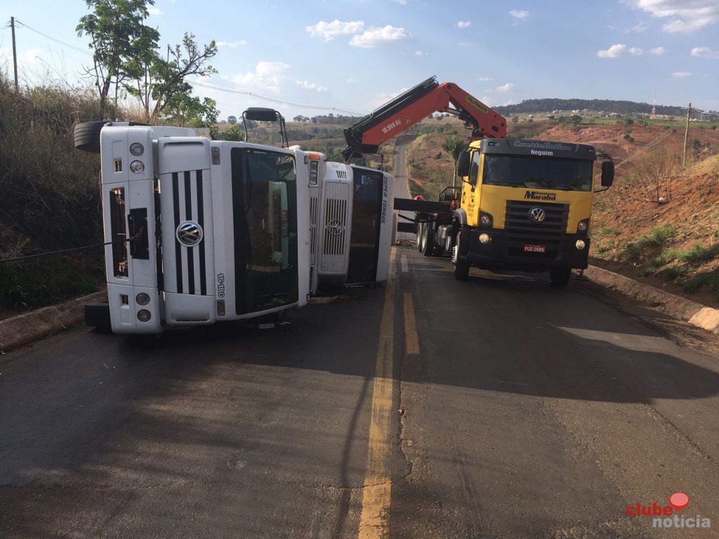 Após falha mecânica, caminhão prancha tomba na MGC-354