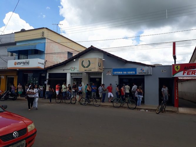 População reclama de longas filas e demora no atendimento em bancos e em casa lotérica em Presidente Olegário.