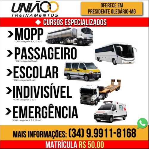 Continua até a próxima Quinta-feira (12) as matrículas para os cursos especializados e operador de máquinas pesadas, as vagas estão disponíveis no Sindicato dos Trabalhadores Rurais de Presidente Olegário. Os cursos oferecem capacitação em transporte de Mopp, Escolar, passageiro, Emergência e cargas indivisíveis e para operadores de máquinas pesadas, em Escavadeira Hidráulica, Retroescavadeira, Carregadeira, […]