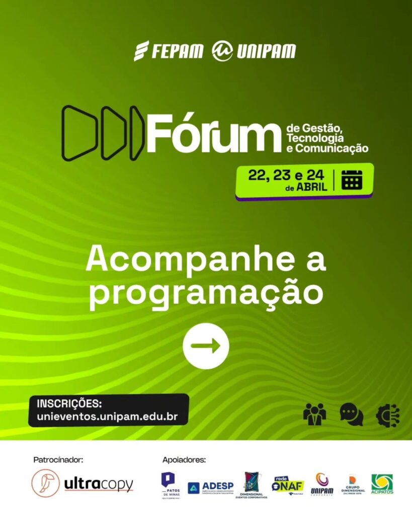 O Centro Universitário de Patos de Minas (UNIPAM) promoverá, de 22 a 24 de abril, no Centro de Convenções e Eventos (CCE) e no campus da instituição, o “Fórum de Gestão, Tecnologia e Comunicação”. O evento se consolida, a cada edição, como um vetor de conhecimento em suas áreas de abordagem, proporcionando uma rica […]